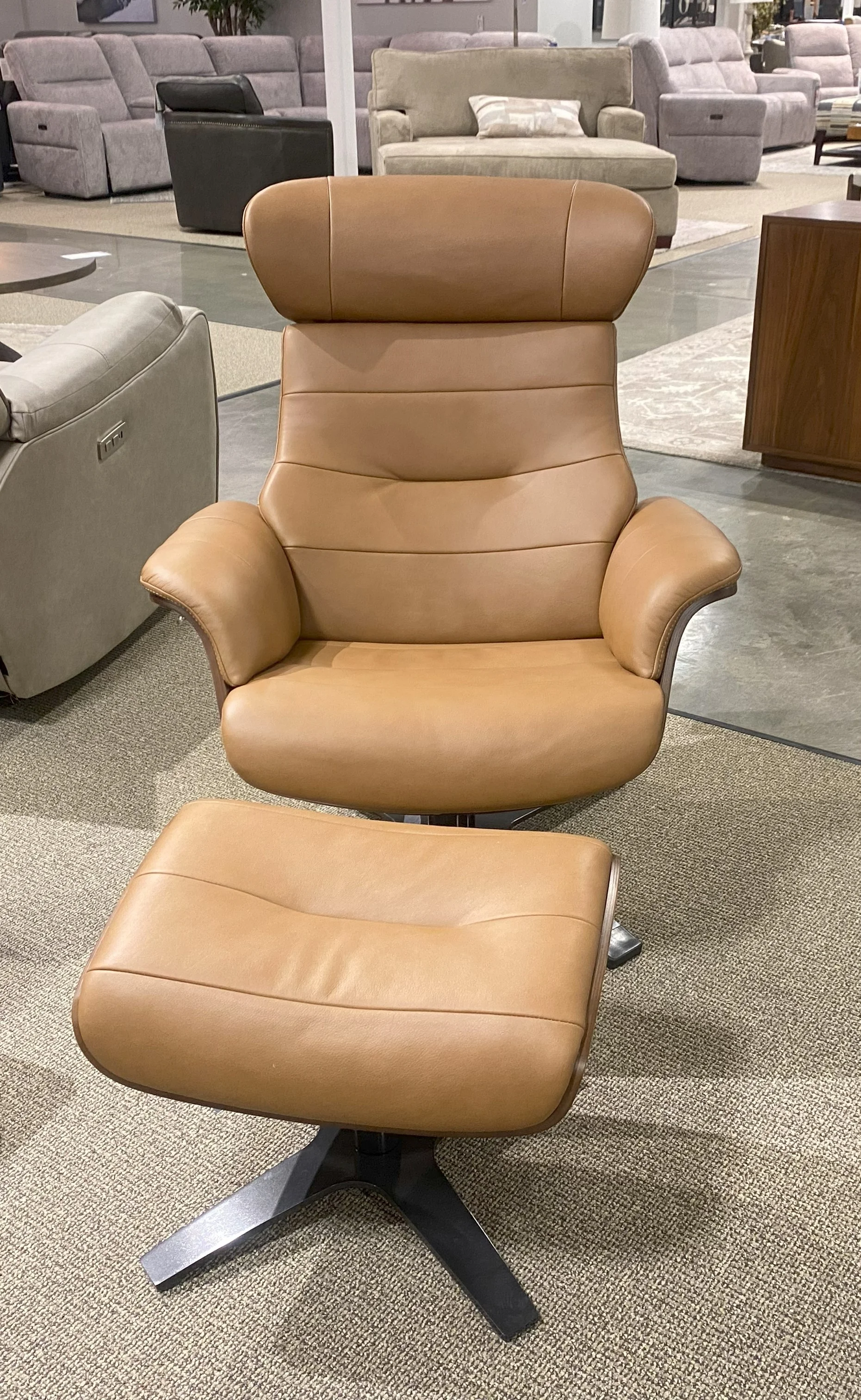 moreEnjoy ultimate relaxation with the perfect combination of modern comfort. This leather chair and ottoman are a premium duo designed for the ultimate relaxation experience. Complete with the ability to swivel, recline, and adjust the headrest for your comfort. Extend your relaxation with the perfectly accommodating footrest.