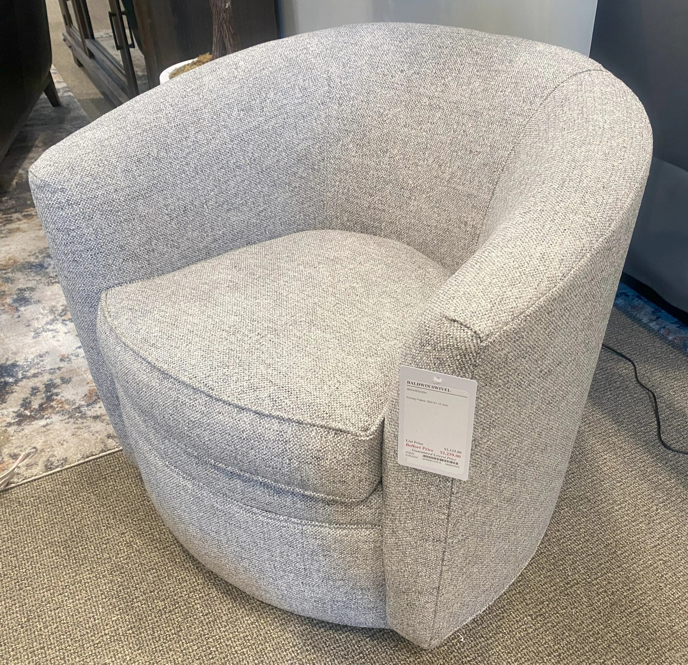 The Chairs and Accents Baldwin Upholstered Swivel Chair, made by Rowe,