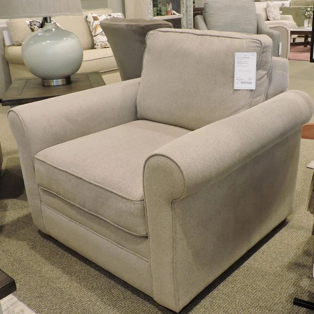 morePerfect for comfort this chair features rolled arms and a pillow like back. It’s a great transitional piece that will work in almost any room setting. This sofa is available with your option of arm, back, and welt type. Choose from panel, sock, track or crescent arm; semi-attached knife edge, loose knife edge, semi-attached boxed back, or loose boxed back; and finally, welt/piping, French seam (single needle), or Saddle Stitch (double needle).