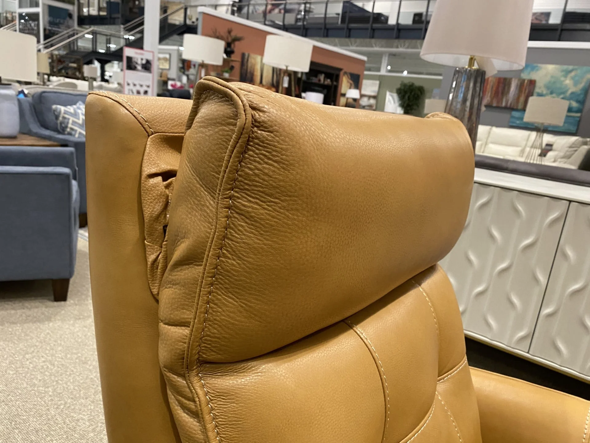 moreThis stylish recliner is designed to provide the ultimate relaxation experience, combining sleek mid-century modern design with advanced features for unparalleled comfort. The recliner's tailored silhouette is upholstered in glove-soft top grain leather, accented with elegant tufting for a sophisticated look.