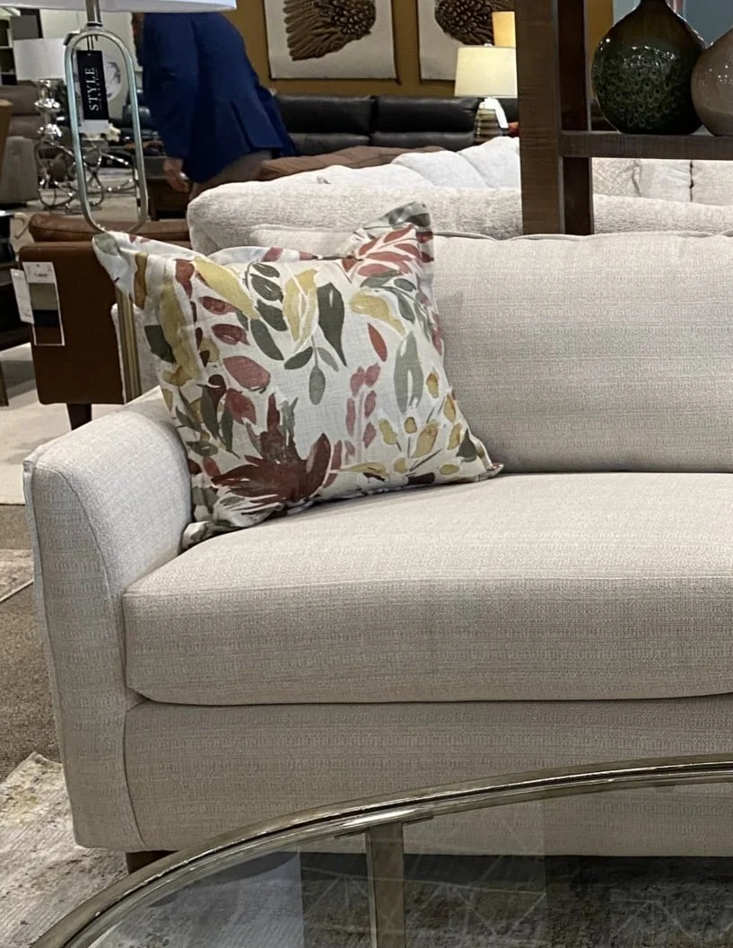 moreThe Kimantha Sofa exudes a beautiful combination of casual appeal with a contemporary flair. Clean lines, exposed wood legs, and flared arms makes this 2-seat sofa the highlight of any living room. Complete with aesthetically pleasing floral accent pillows, this sofa is sure to bring a vibrant and refreshing look to your living room.