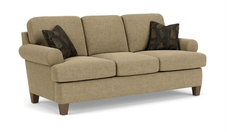 Cozy up with a loved one or claim it all for yourself with the sofa that lets you personalize details for the perfect look and feel. A classic silhouette with casual, curved sock arms sits on square tapered legs that are available in three distinct finishes-Florentine, Valencia, or Urban Renewal-to complement any decor. The removable T-shaped seat cushions offer a distinctive look and added comfort. Sink into the ideal level of support with your choice of our luxury or plush cushions. Complete the look and showcase your lifestyle with hundreds of different fabric choices, including high-performance and sustainable textiles. Superior frame construction and our patented C-Flex Blue Steel Spring™ ensures your sofa can be enjoyed for years to come.