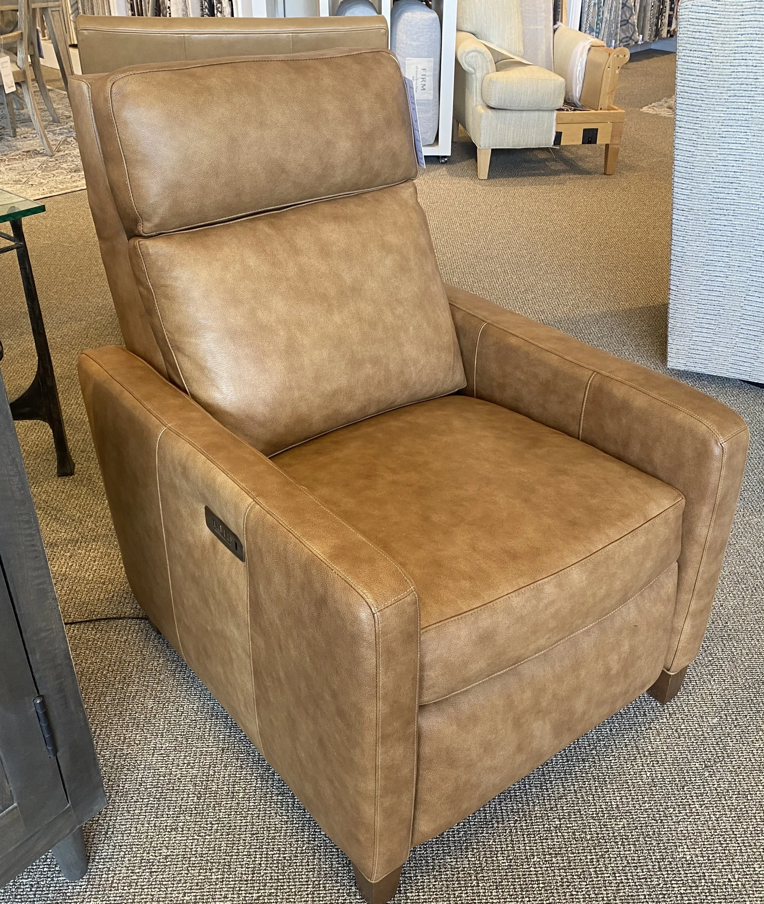 moreWith modern styling and an articulating headrest, this recliner is tailored to your comfort. At the touch of a button, its power reclining mechanism can be stopped in an infinite number of comfy positions to accommodate your favorite relaxing activities. Available in fabric or leather, this item is handcrafted to order in the foothills of North Carolina using time-tested manufacturing techniques and the finest materials available. Visit one of our retailers to learn how you can make it your own. Depth fully reclined: 67″. Battery sold separately. Also available as a Swivel Glider Power Recliner (8128-SGPRC).