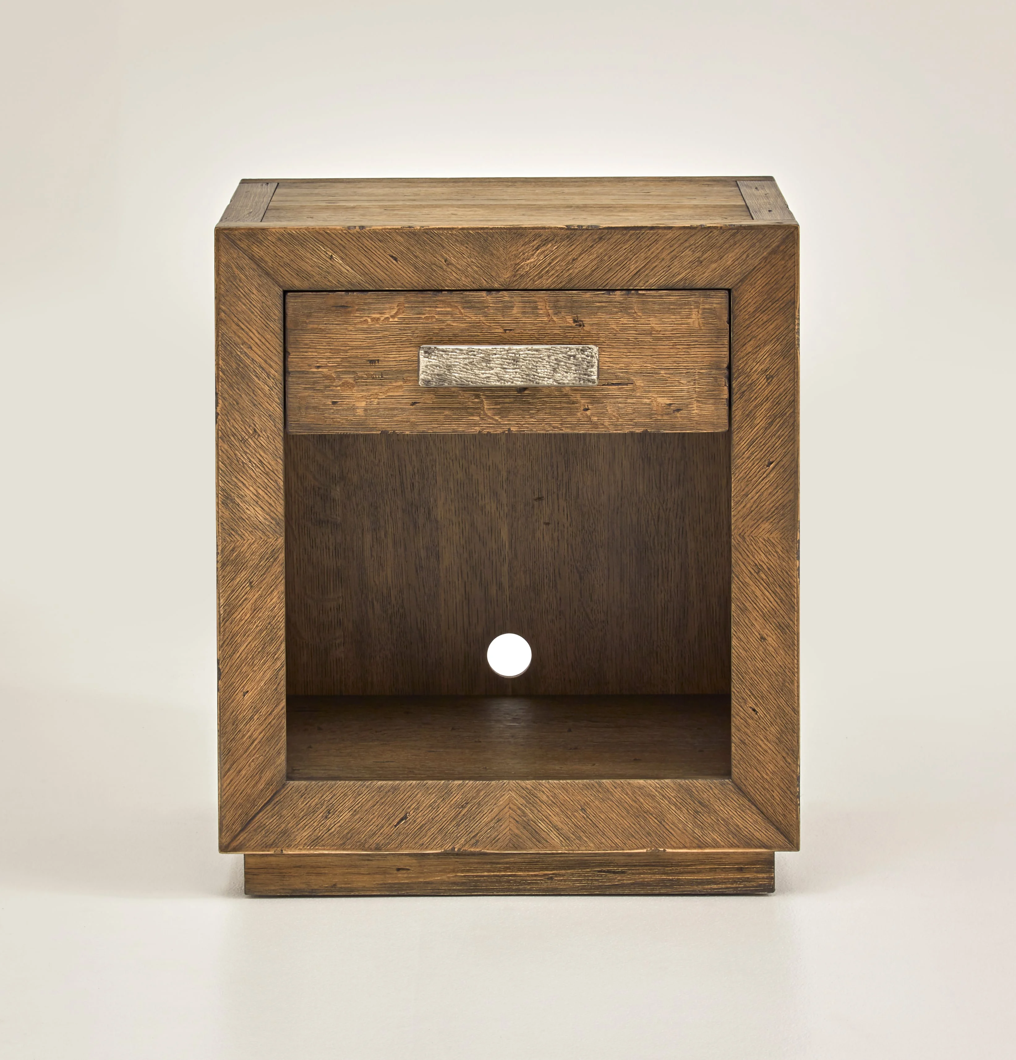 The Sugarland Rustic 1-Drawer End Table with Wire Management Hole, made by The Preserve,